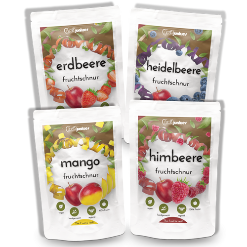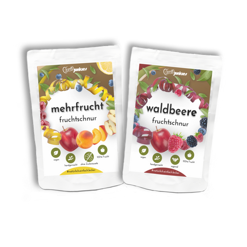 Wie? Ganz einfach, wir nutzen einen schonenden Dörrvorgang und basteln nicht aus einer Frucht, nein, sondern aus mindestens zwei Früchten neue köstliche Fruchtsnacks und nennen sie FRUCHTSCHNUR.