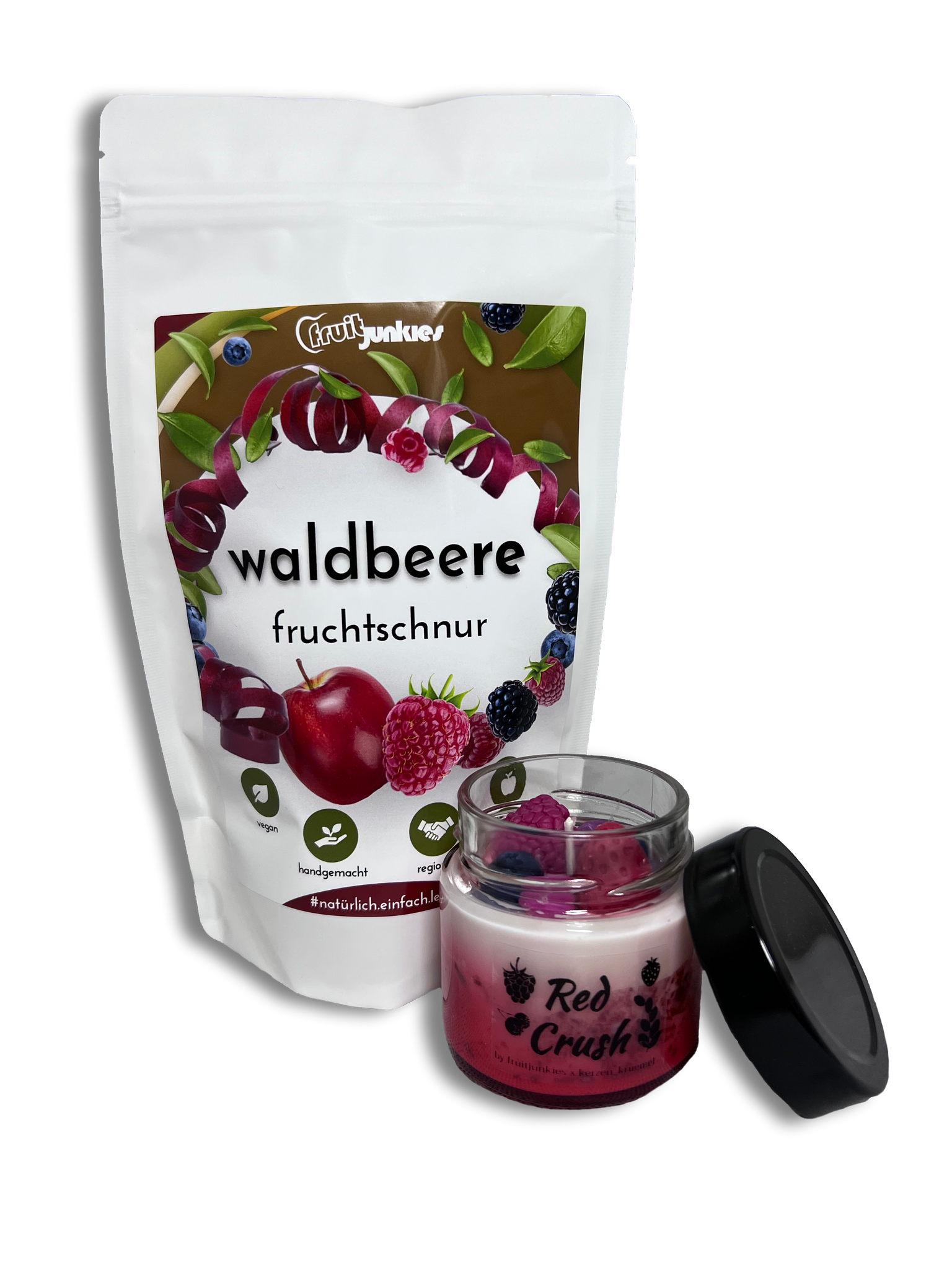 Beerige Gemütlichkeit pur: Ein süß-fruchtiger Duftmix erfüllt dein Zuhause. Perfekt ergänzt durch unsere beerigen Waldbeer-Fruchtschnüre – für den doppelten Beeren-Genuss. Kerze an, Schnüre snacken, entspannen.